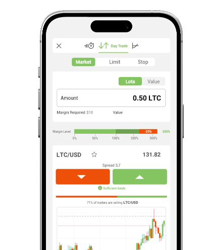 Trade both upwards (i.e. going long) or the downwards (i.e. short selling Litecoin or going short) price movements.